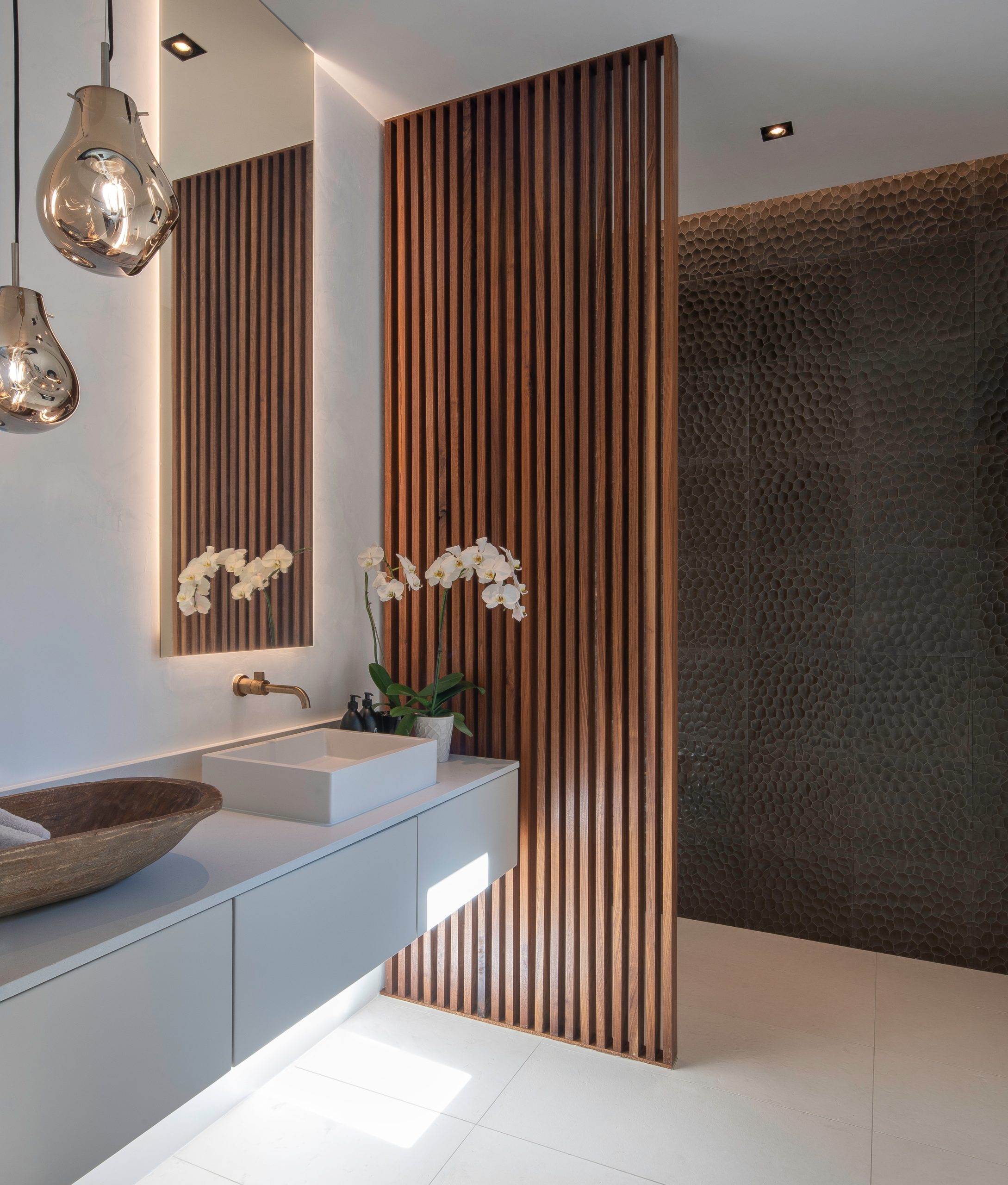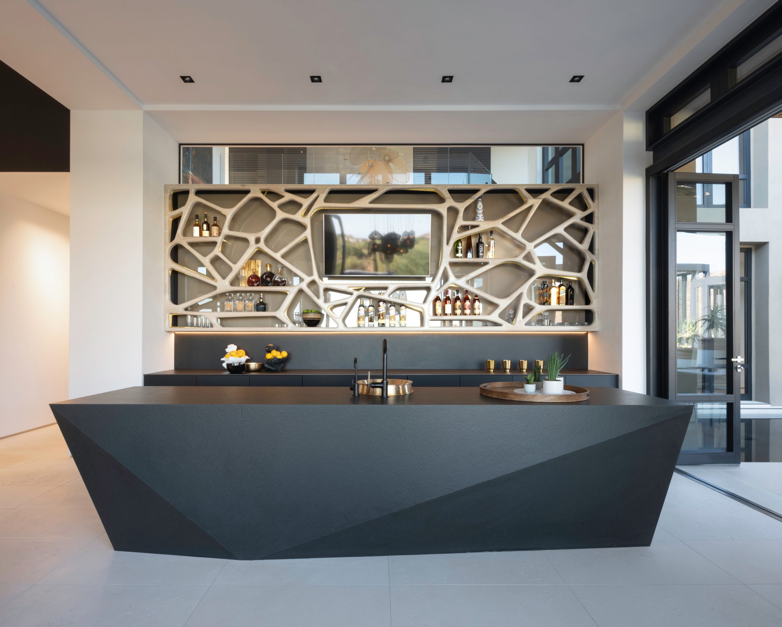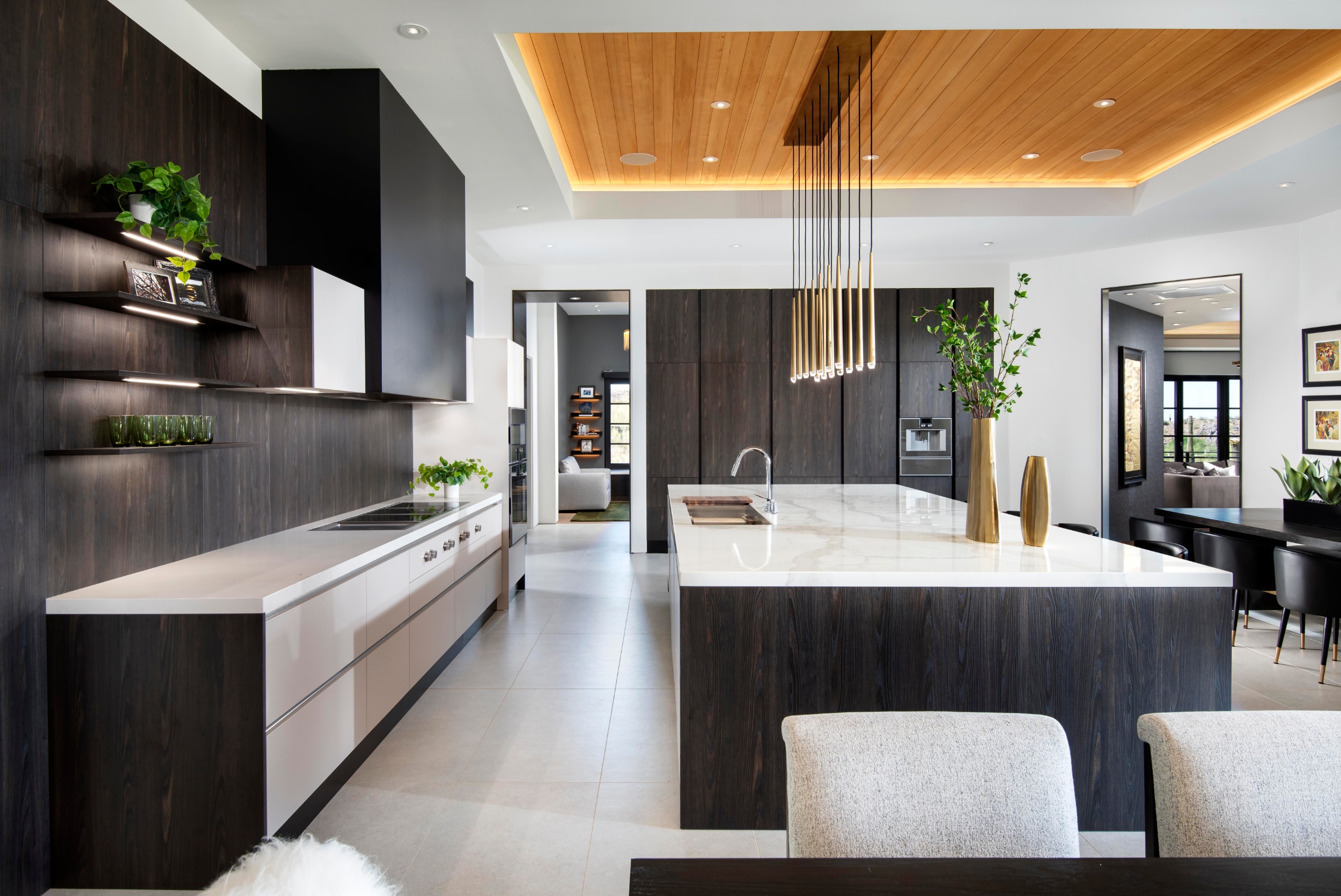 Most finish materials on this project were sourced from all over the world, which required a significant amount of management regarding logistics and installation processes/techniques. The design details were endless from a custom 3d bar to a fully wrapped slab island in a geometric shape to unique tongue and groove ceiling and wall details.